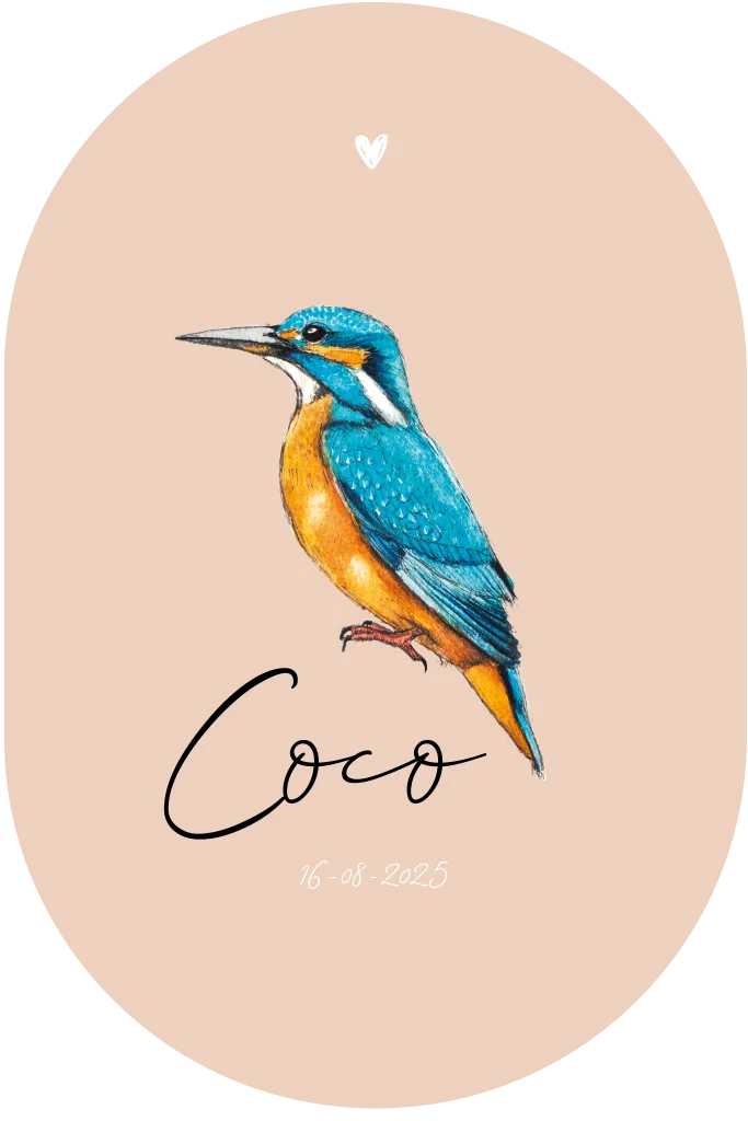 Geboortekaartje meisje met de mooie ijsvogel, met de hand getekend en afgewerkt met aquarel. Maak van dit geboortekaartje in standvorm door verschillende kleuren en lettertypes er je eigen ontwerp van.