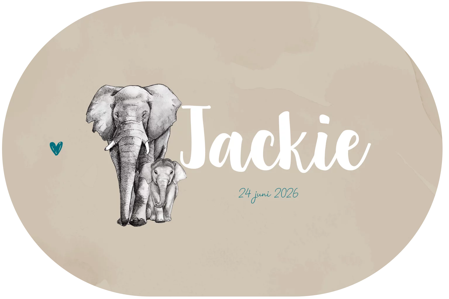 Stoere olifant met baby olifant, met de hand getekend en afgewerkt met aquarel. Maak van dit beige geboortekaartje met een bijzondere vorm door verschillende kleuren en lettertypes er je eigen ontwerp van.