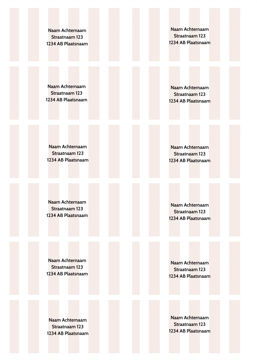 Je kan de adresstickers volledig naar eigen smaak personaliseren. Let er wel op dat het contrast tussen de achtergrond en het adres groot is, zodat alles goed leesbaar blijft.