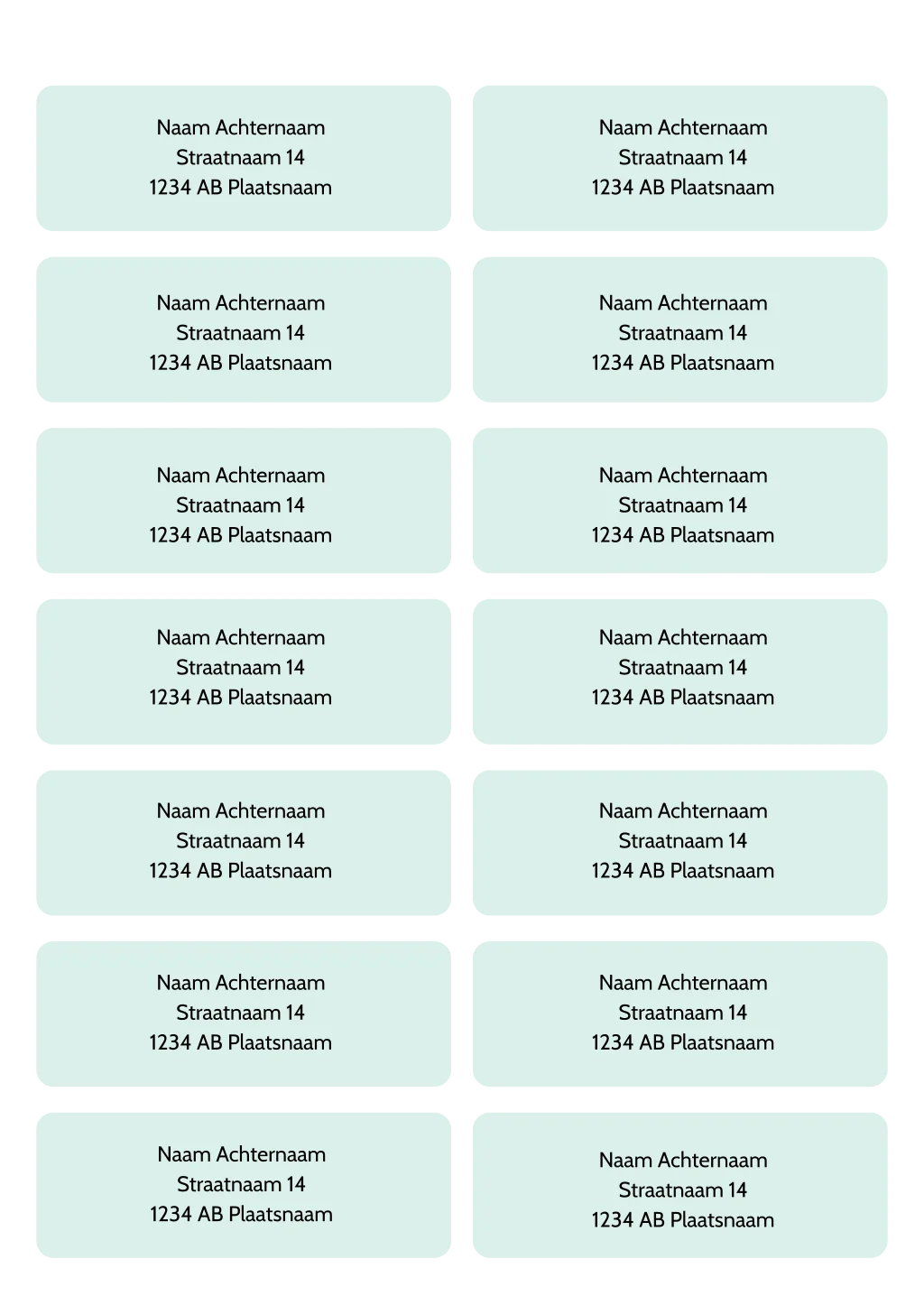 Je kan de adresstickers volledig naar eigen smaak personaliseren. Let er wel op dat het contrast tussen de achtergrond en het adres groot is, zodat alles goed leesbaar blijft.