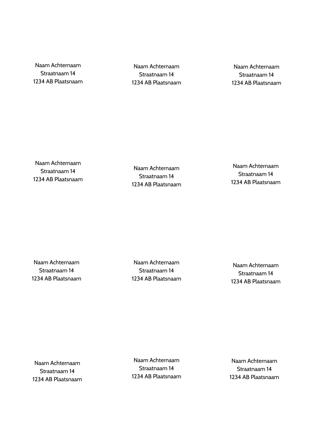 Wil je niet zelf je adressen schrijven? Dan kan je je adresstickers van te voren bestellen. TIP: ga voor een duidelijk lettertype en ga niet kleiner dan 3 punten.