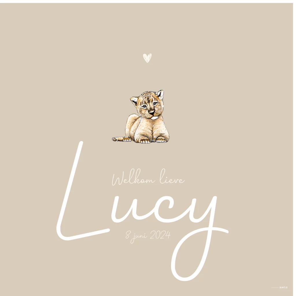 Raambord met leeuwen welpje, met de hand getekend en afgewerkt met aquarel. Maak met verschillende kleuren, illustraties en lettertypes er je eigen raambord van.