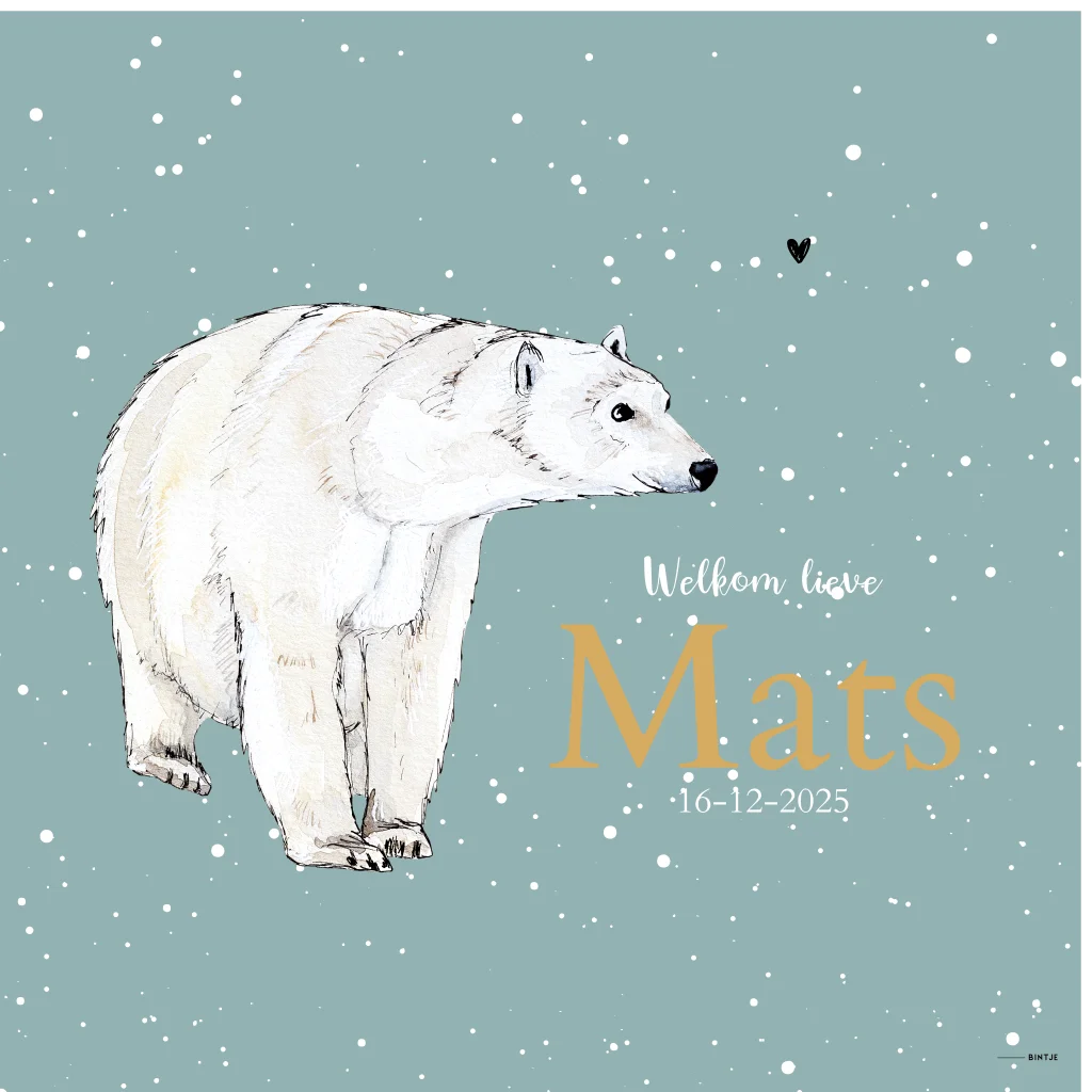 Raambord met een stoere ijsbeer, met de hand getekend en afgewerkt met aquarel. Maak met verschillende kleuren, illustraties en lettertypes er je eigen raambord van.