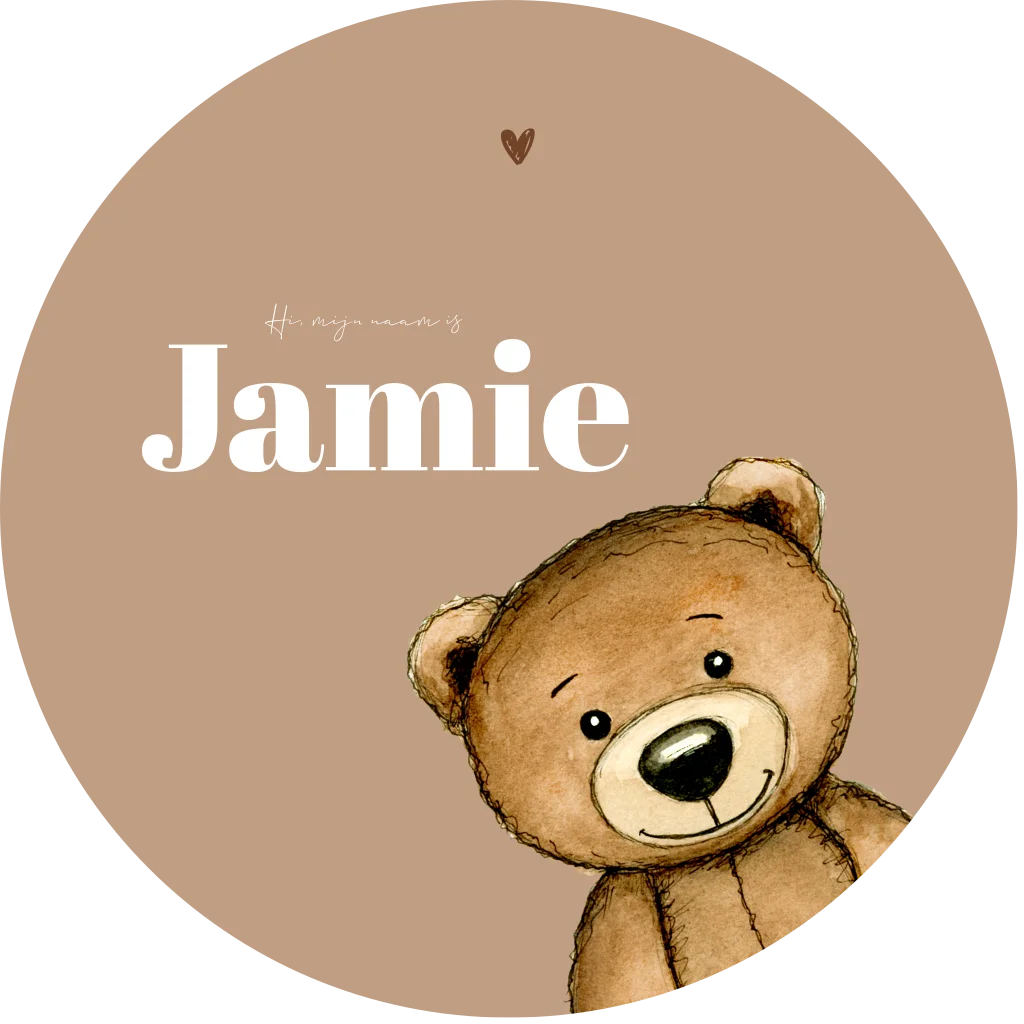 Behangcirkel met een illustratie met een schatige knuffel beer, getekend door BINTJE. Deze behangcirkel heeft een doorsnede van 80cm en is helemaal naar eigen wens aan te passen