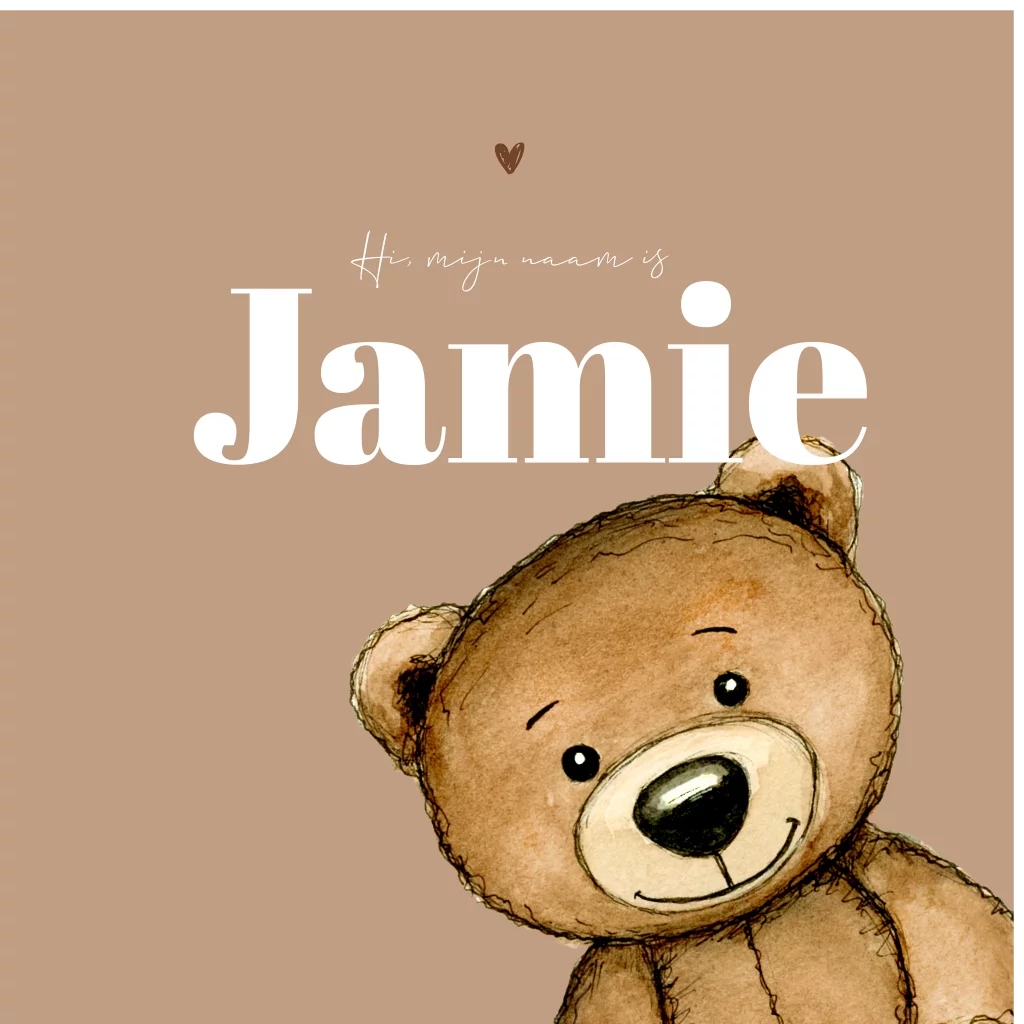 Raambord met knuffel beer, met de hand getekend en afgewerkt met aquarel. Maak met verschillende kleuren, illustraties en lettertypes er je eigen raambord van.