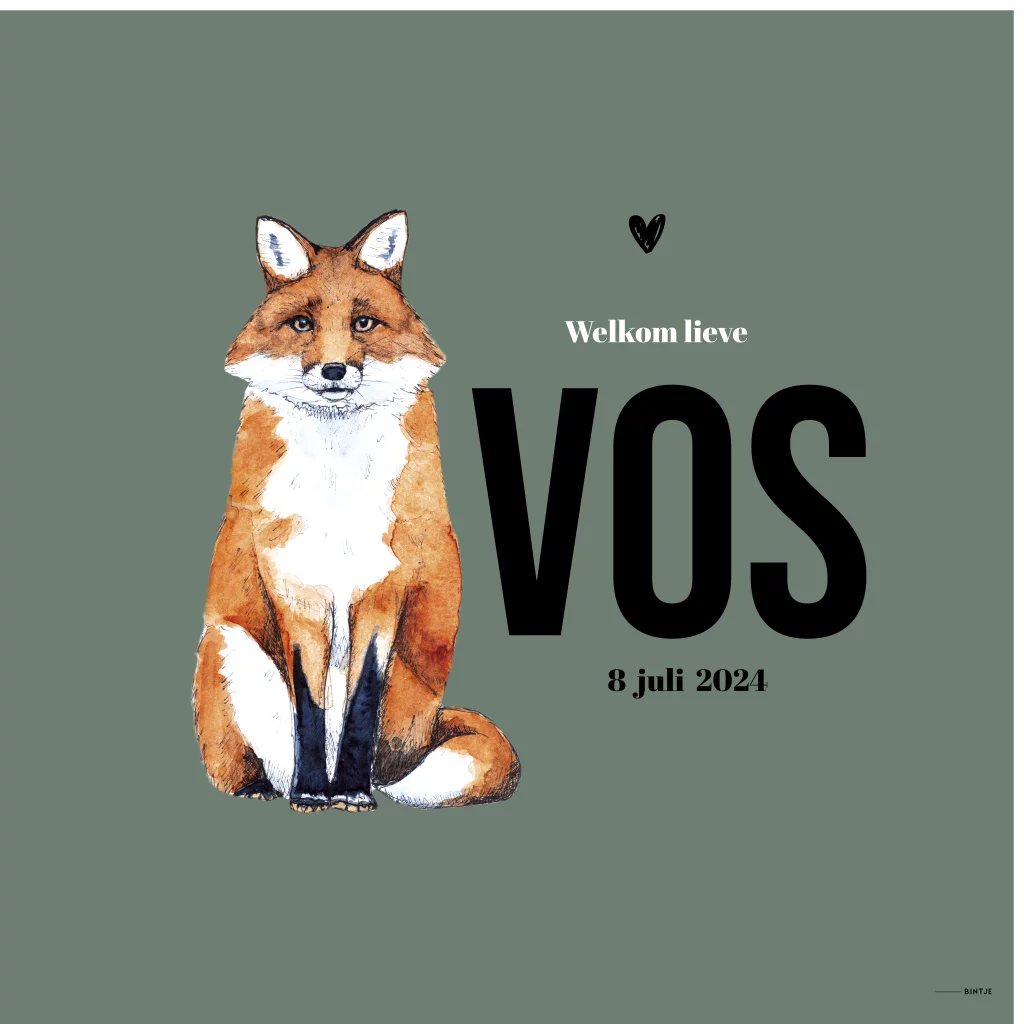 Raambord met vos, met de hand getekend en afgewerkt met aquarel. Maak met verschillende kleuren, illustraties en lettertypes er je eigen raambord van.