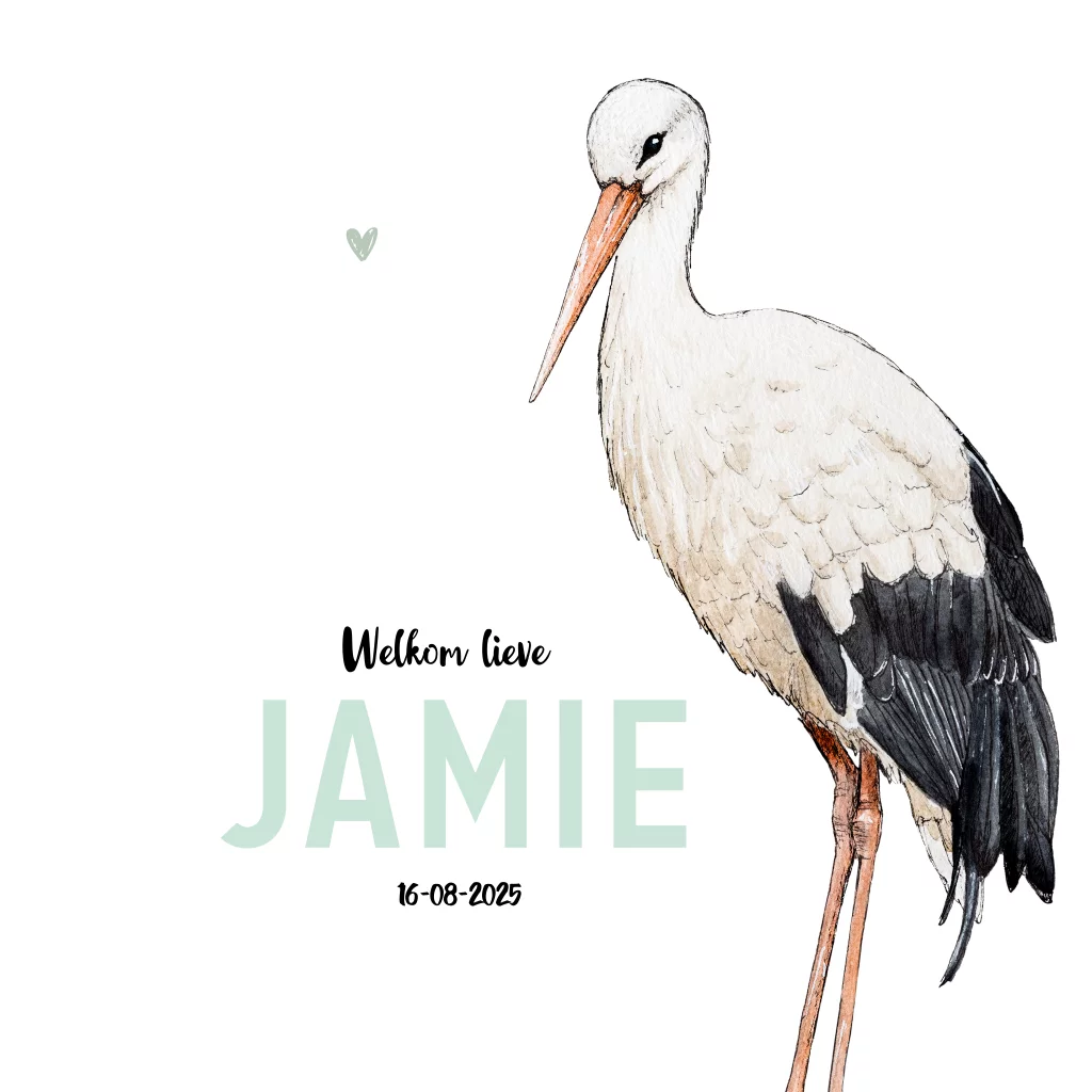 Tuinbord met een schattige ooievaar, met de hand getekend en afgewerkt met aquarel. Maak met verschillende kleuren, illustraties en lettertypes er je eigen tuinbored van.