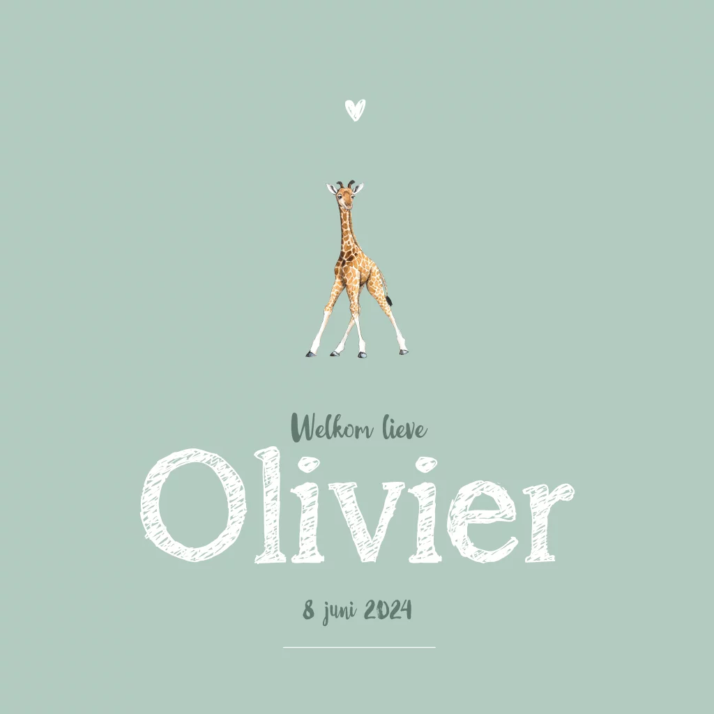 Dubbel geboortekaartje klein baby giraf voor een Jongen
