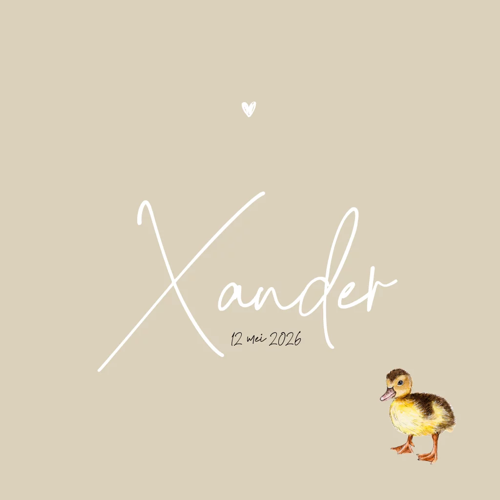 Schattig baby eendje, met de hand getekend en afgewerkt met aquarel. Maak van dit geboortekaartje door verschillende kleuren en lettertypes er je eigen ontwerp van.