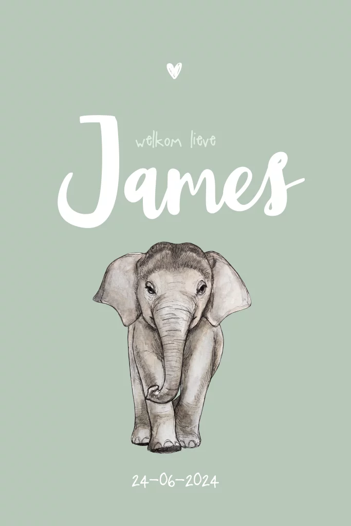 Enkel geboortekaartje baby olifant groen voor een jongen