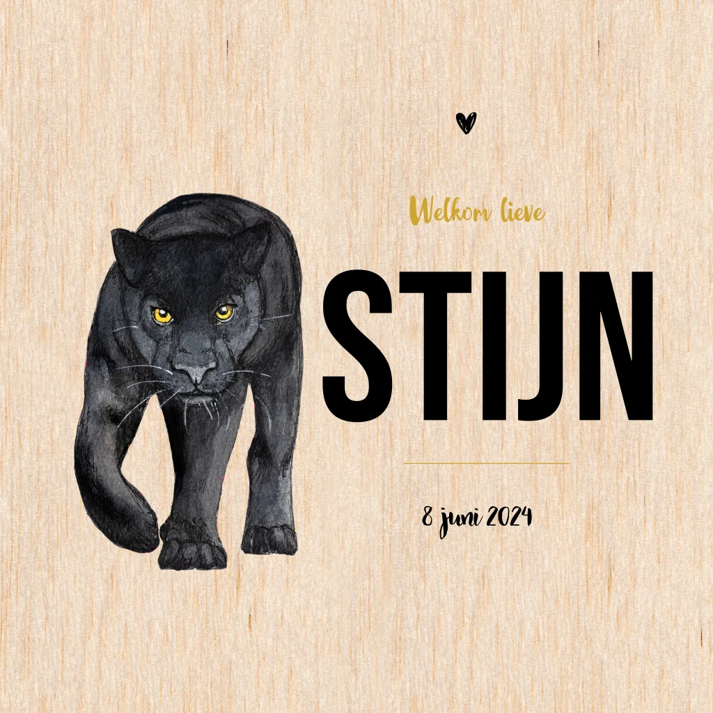 Stoere zwarte panter, met de hand getekend en afgewerkt met aquarel. Maak van dit geboortekaartje door verschillende kleuren en lettertypes er je eigen ontwerp van.