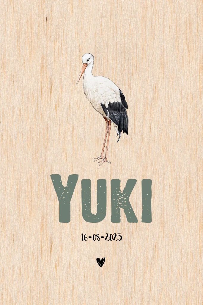 Enkel staand geboortekaartje ooievaar Hout Jongen