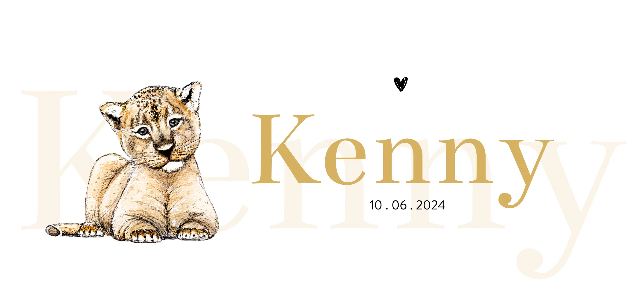 Schattige leeuwen welpje, met de hand getekend en afgewerkt met aquarel. Maak van dit geboortekaartje door verschillende kleuren en lettertypes er je eigen ontwerp van.