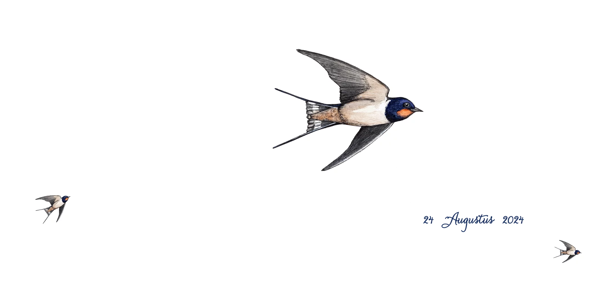 Zwaluw, met de hand getekend en afgewerkt met aquarel. Maak van dit geboortekaartje door verschillende kleuren en lettertypes er je eigen ontwerp van.