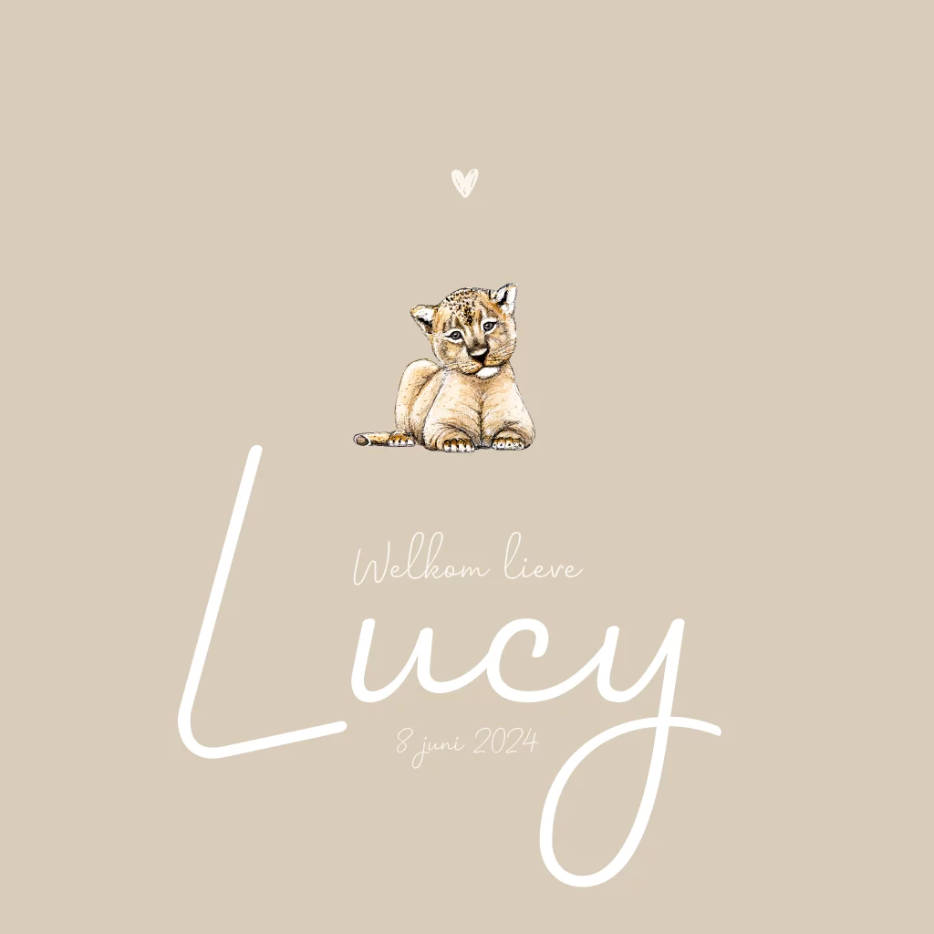 Schattig leeuwen welpje, met de hand getekend en afgewerkt met aquarel. Maak van dit geboortekaartje door verschillende kleuren en lettertypes er je eigen ontwerp van.