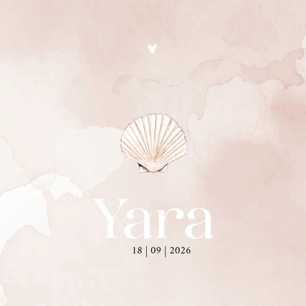 Mooi schelpje, met de hand getekend en afgewerkt met aquarel. Maak van dit geboortekaartje door verschillende kleuren en lettertypes er je eigen ontwerp van.