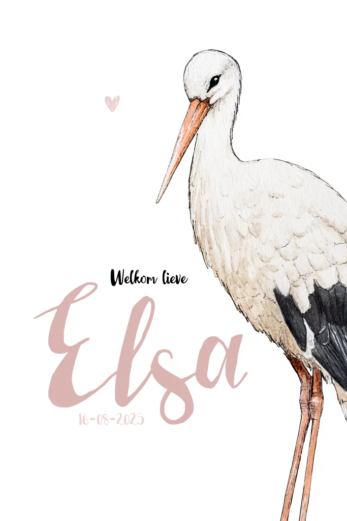Enkel staand geboortekaartje ooievaar Meisje