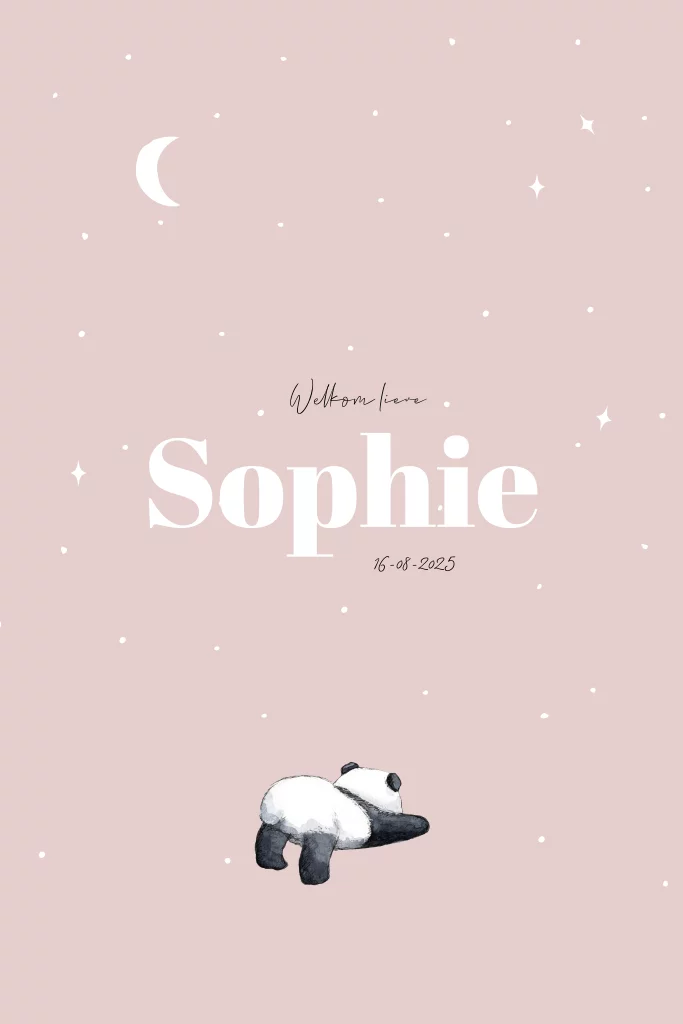 Hoe schattig is dit geboortekaartje met baby panda en maan. Je kunt het geboortekaartje helemaal naar eigen wens aanpassen.