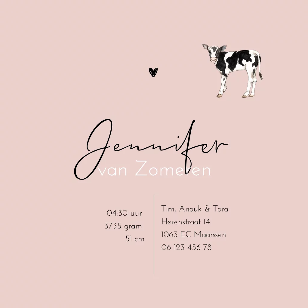 Geboortekaartje meisje kalfje ronde hoeken