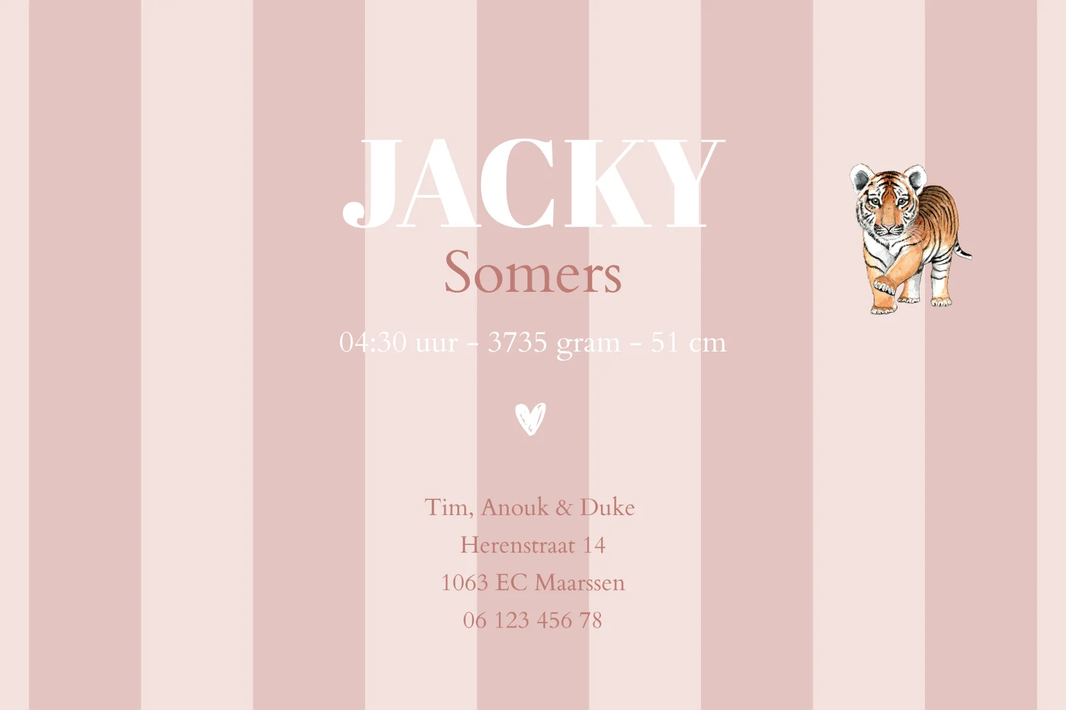 Geboortekaartje meisje strepen baby tijger