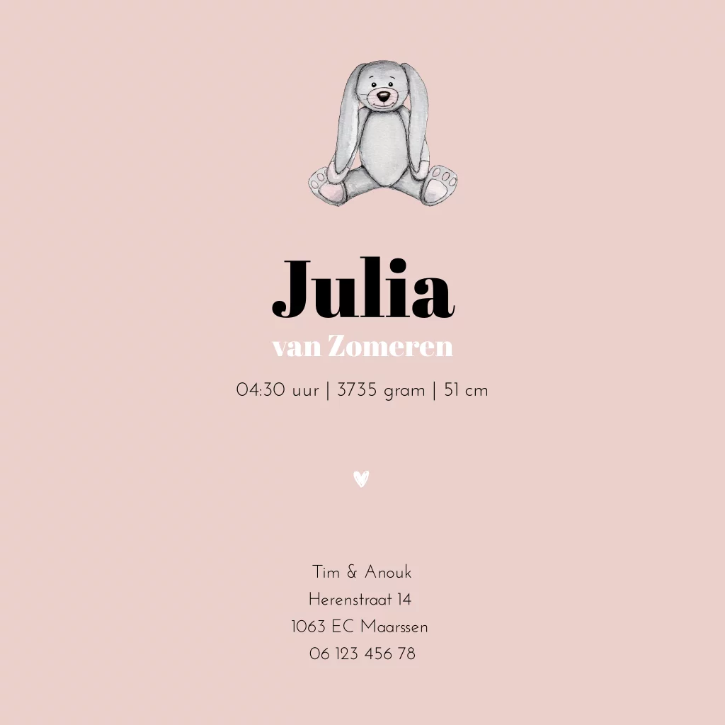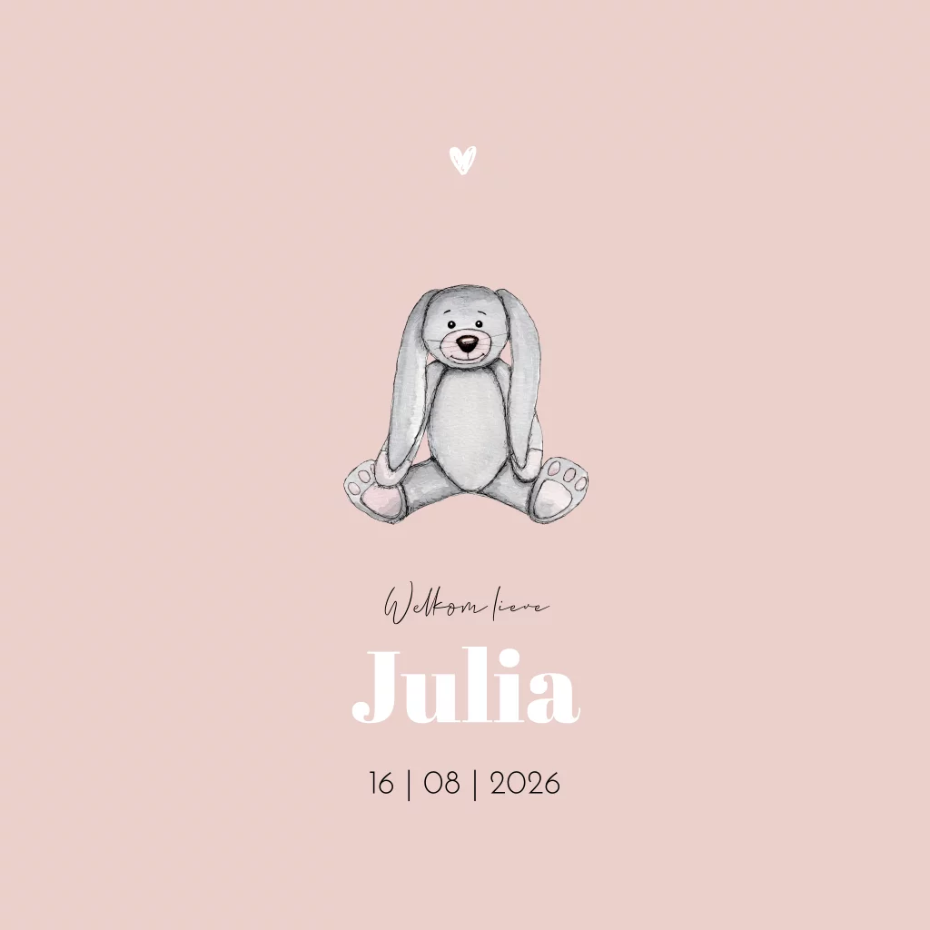 Geboortekaartje vierkant knuffel konijn