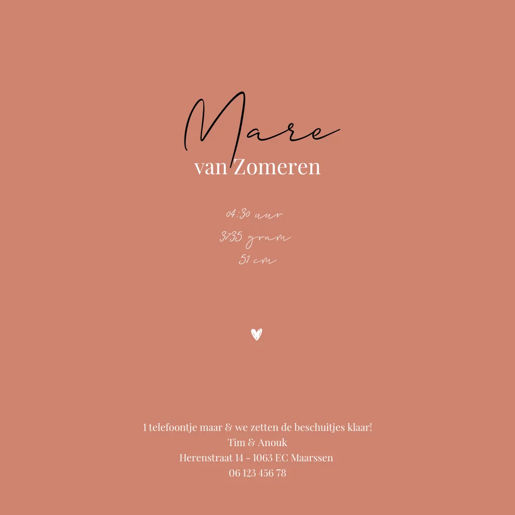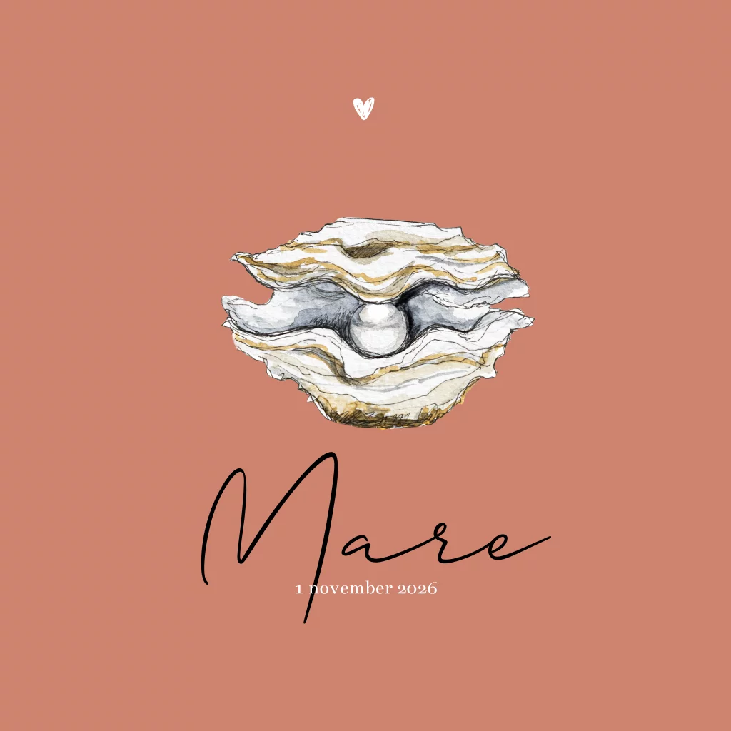Geboortekaartje met parel, met de hand getekend en afgewerkt met aquarel. Maak van dit geboortekaartje, met verschillende kleuren en lettertypes er je eigen geboortekaartje van.