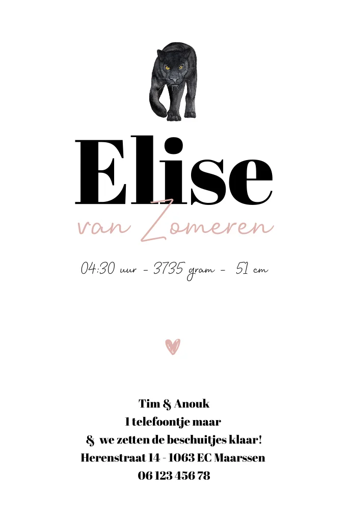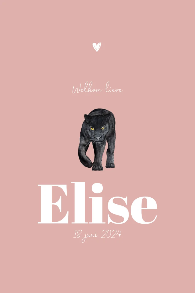Staand geboortekaartje zwarte panter voor een meisje