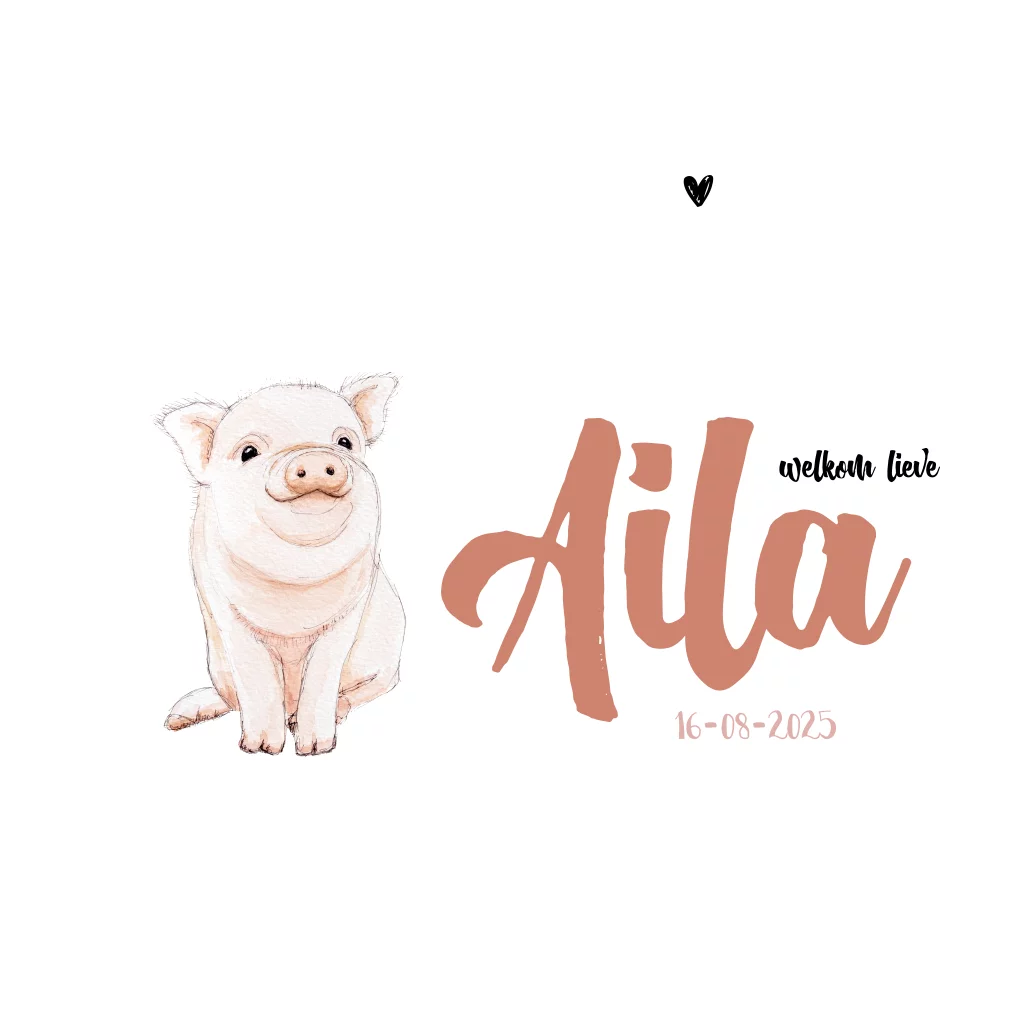 Schattige biggetje, met de hand getekend en afgewerkt met aquarel. Maak van dit geboortekaartje door verschillende kleuren en lettertypes er je eigen ontwerp van.