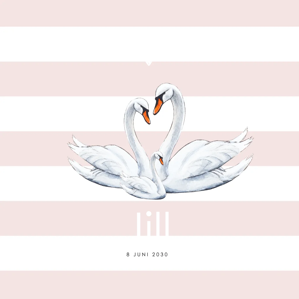 Vierkant geboortekaartje met streepjes en zwaantjes