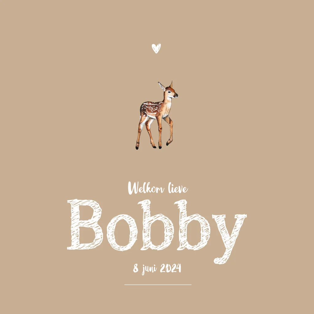 Schattig hertje, met de hand getekend en afgewerkt met aquarel. Maak van dit geboortekaartje door verschillende kleuren en lettertypes er je eigen ontwerp van.