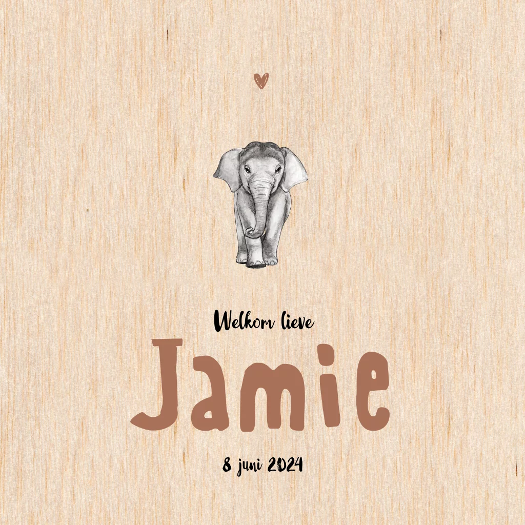 Enkel geboortekaartje baby olifant hout Neutraal