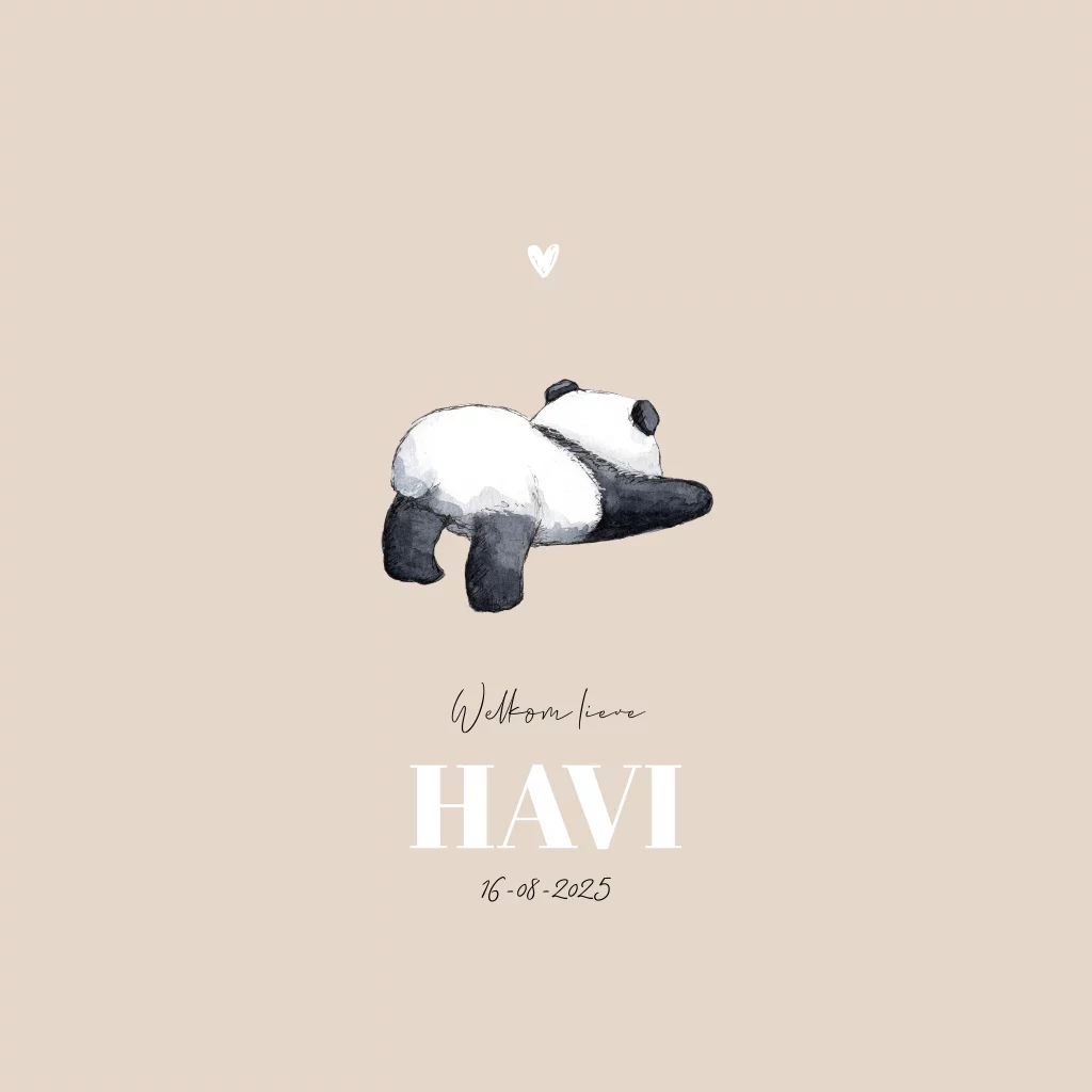 Geboortekaartje met baby panda, met de hand getekend en afgewerkt met aquarel. Maak van dit geboortekaartje, met verschillende kleuren en lettertypes er je eigen geboortekaartje van.