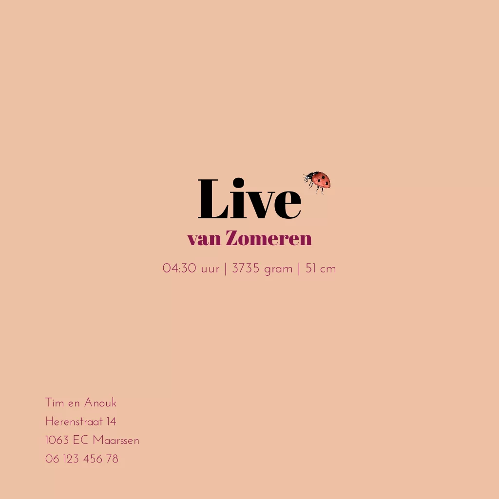 Geboortekaartje vierkant met lieveheersbeestje en baby leew