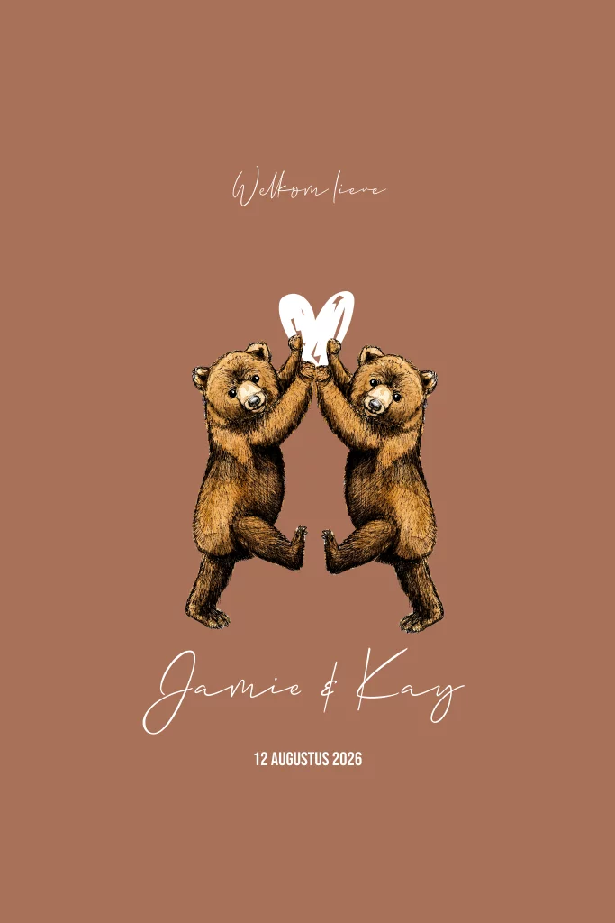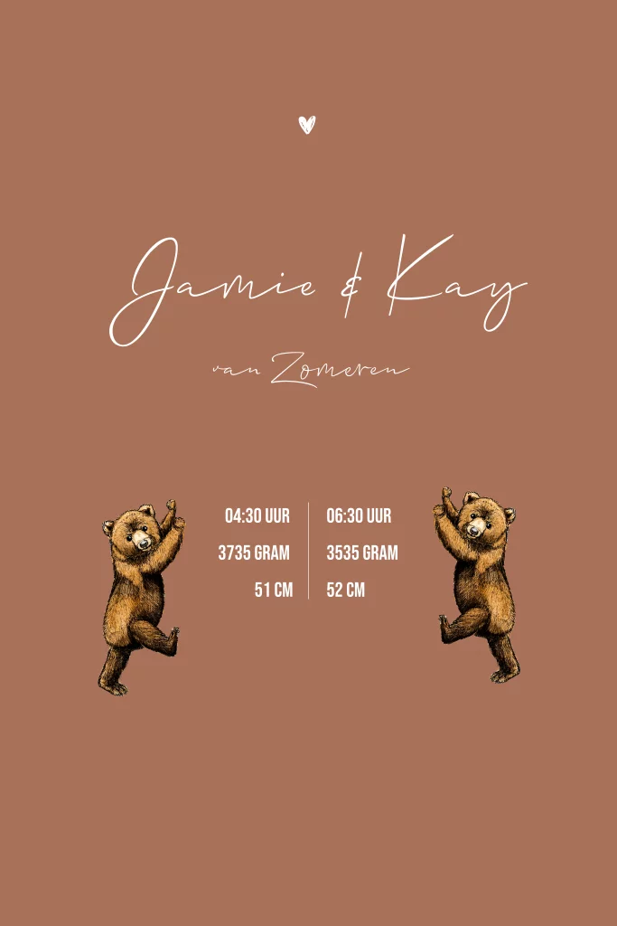 Geboortekaartje voor een tweeling met 2 beertjes
