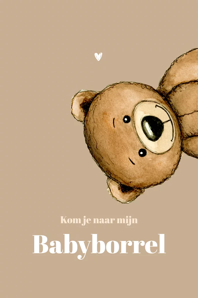Hoe schattig is dit kraamborrelkaartje teddybeer. Je kunt het babyborrel kaartje helemaal naar eigen wens aanpassen.
