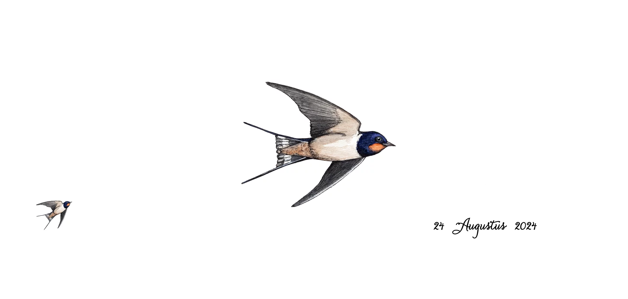 Zwaluw, met de hand getekend en afgewerkt met aquarel. Maak van dit geboortekaartje door verschillende kleuren en lettertypes er je eigen ontwerp van.