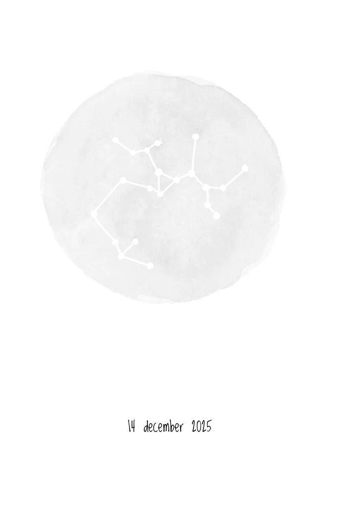 Staand geboortekaartje met sterrenbeeld in goudfolie getekend door BINTJE. Dit kaartje kan je helemaal zelf aanpassen naar eigen wens. Selecteer je sterrenbeeld bij "Afbeeldingen en versieringen".