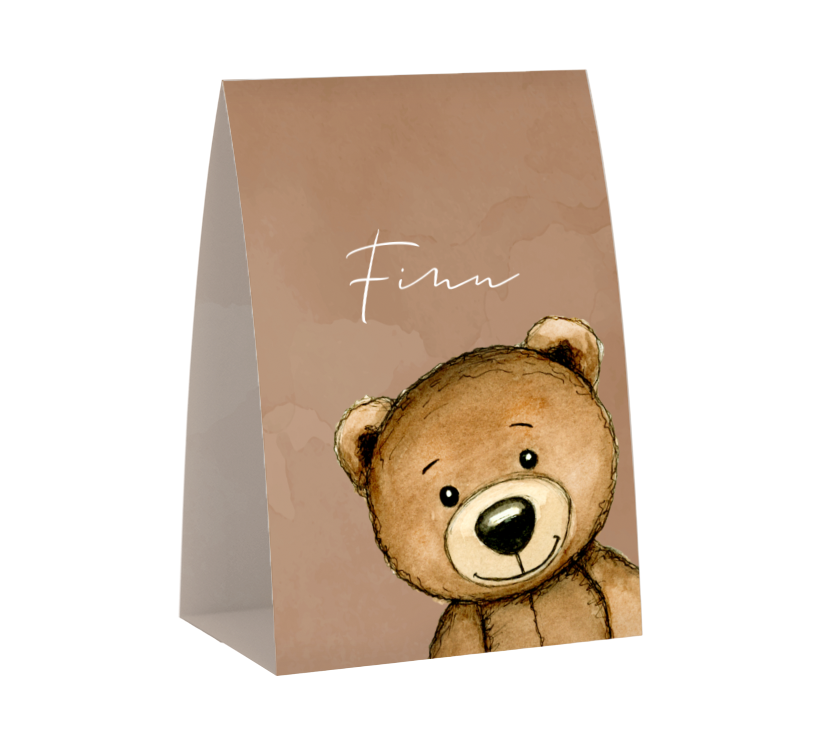 Hoe bijzonder is dit tentkaartje? Dit kaartje kan je gemakkelijk in elkaar zetten en heeft een schattige illustratie van de teddybeer, getekend door BINTJE. Dit kaartje is helemaal zelf aanpassen in de editor. Maak met andere kleuren, lettertypes of een ander diertje er je eigen geboortekaartje van.
